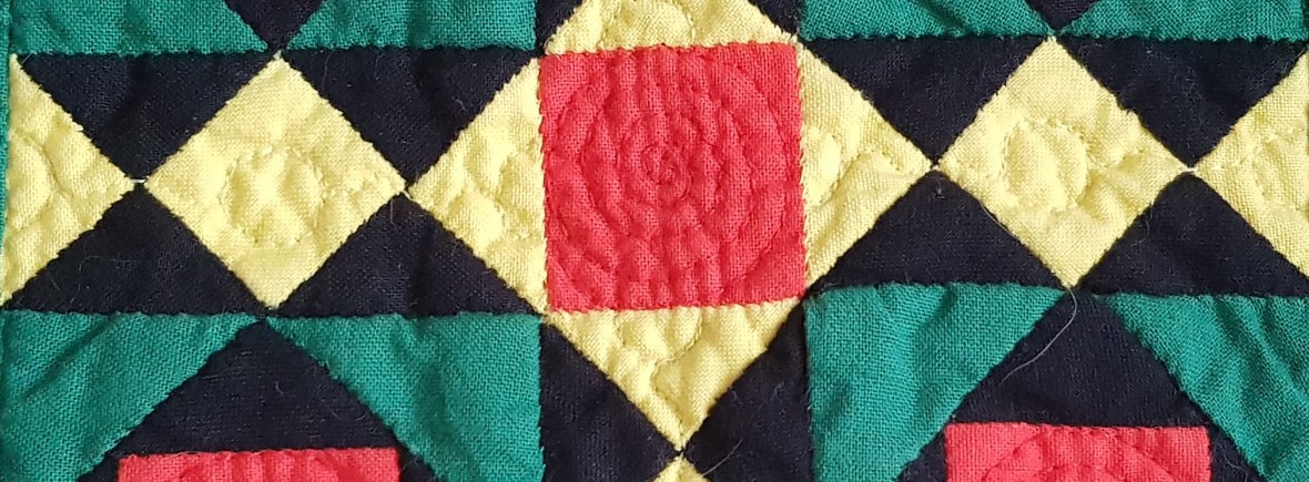 The patchwork squares around the edges were made from a Joseph’s Coat black I found, plus a block I made up (but it may exist somewhere!).